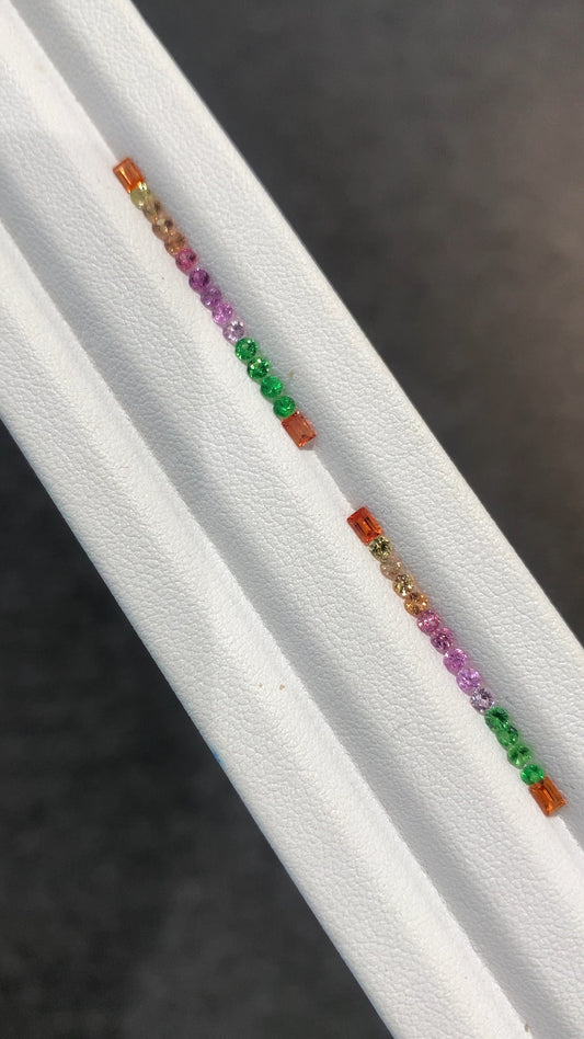 2mm Rounds with Baguettes 3x2mm Natural Rainbow Sapphires Tsavorite 15 pieces Ring Set