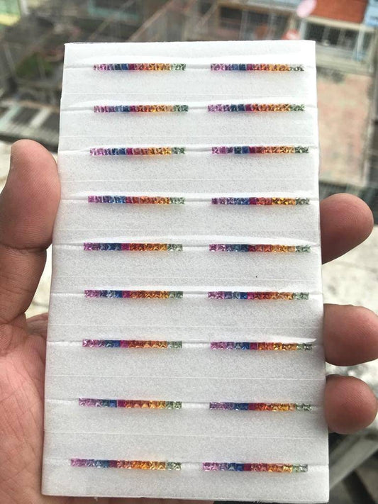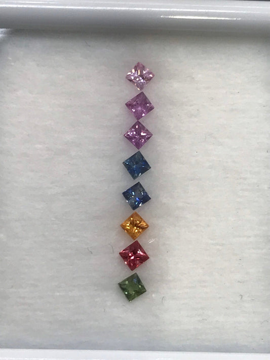 2.3mm Fancy Rainbow sapphires Square Princes cut Ring Set 8 Stone
