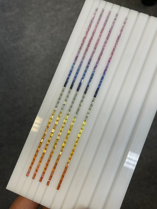 "4x2mm Baguette Cut Natural Rainbow Sapphire Bracelet Set 7 inches