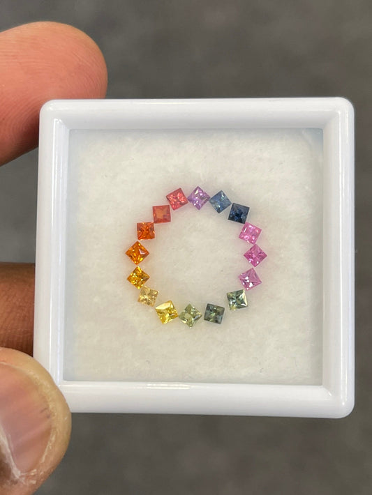 "2.3mm Rainbow Sapphire Princess Cut Loose Stone Ring Set"